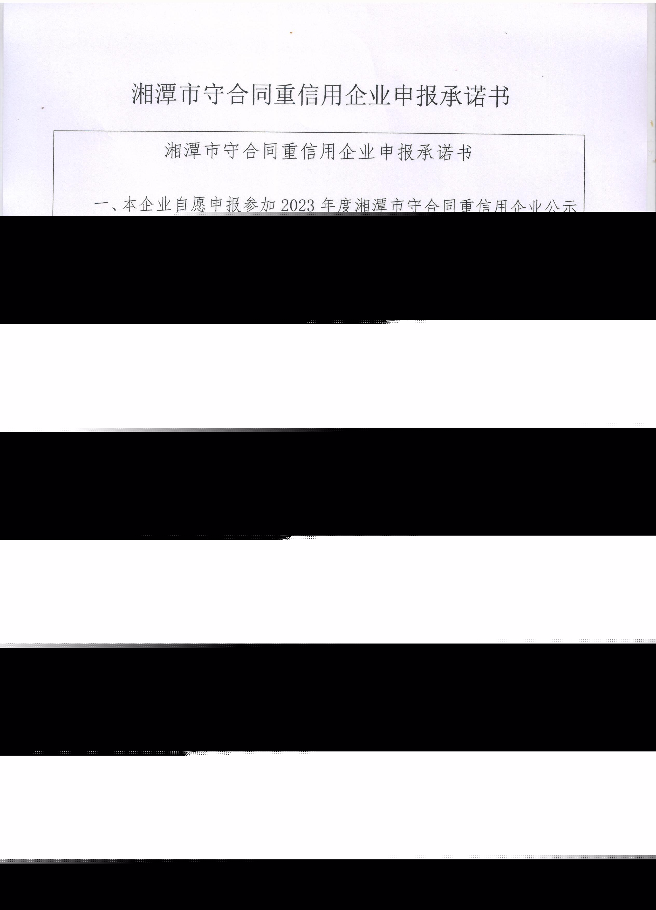 本企業(yè)根據(jù)《湘潭市守合同重信用企業(yè)申報規(guī)定》等編制 2023 年度企業(yè)信用報告書,并保證本報告書內容真實、準確、完整。