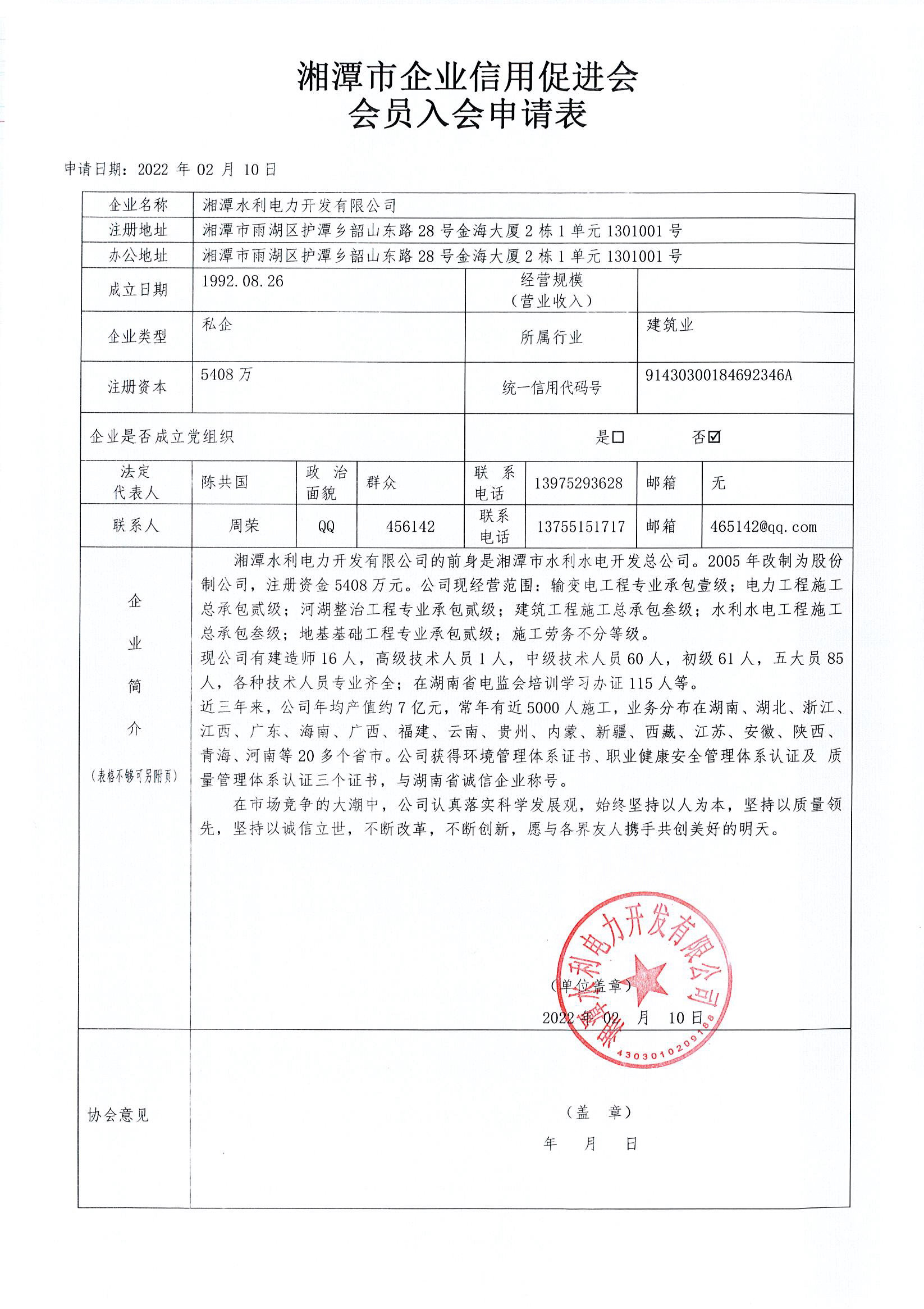 名稱: 湘潭水利電力開發(fā)有限公司 登記證號: 91430300184692346A 法定代表人: 陳喜龍
